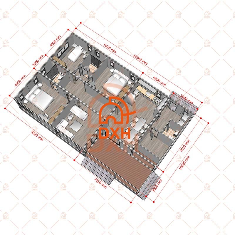 DXH mobil modüler konteyner evi, geçici ofis alanı, yurtlar ve esnek yaşam düzenlemeleri için tasarlanmış yenilikçi bir çözümdür. Herhangi bir ortamda işçiler veya sakinler için güvenli, güvenli ve konforlu bir ortam sağlamak için yüksek kaliteli malzemelerle inşa edilmiştir.