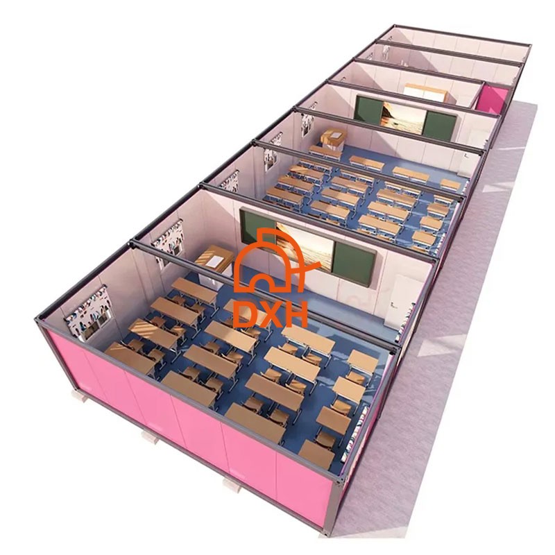 DetaylarDXH House's flat pack container school buildings provide ready-to-use learning and office spaces for students and educators. Our prefabricated container structures eliminate the lengthy construction cycles and site disruptions associated with traditional buildings. DXH House offers two standard container house sizes: 20-foot or 40-foot, and we also offer customizable container layouts. Our service commitment is to provide you with a fast-deployed, durable, and high-quality modular container school building.