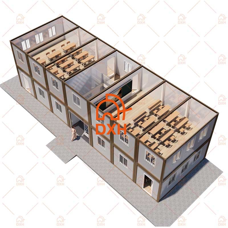 DXH House'un demonte konteyner okul binaları, öğrenciler ve eğitimciler için kullanıma hazır öğrenme ve ofis alanları sunar. Prefabrik konteyner yapılarımız, geleneksel binalarla ilişkili uzun inşaat süreçlerini ve şantiye kesintilerini ortadan kaldırır. DXH House, 6 metrelik (20 fit) ve 12 metrelik (40 fit) olmak üzere iki standart konteyner ev boyutu sunar ve ayrıca özelleştirilebilir konteyner yerleşim planları da sunar. Hizmet taahhüdümüz, size hızlı konuşlandırılabilen, dayanıklı ve yüksek kaliteli bir modüler konteyner okul binası sağlamaktır.